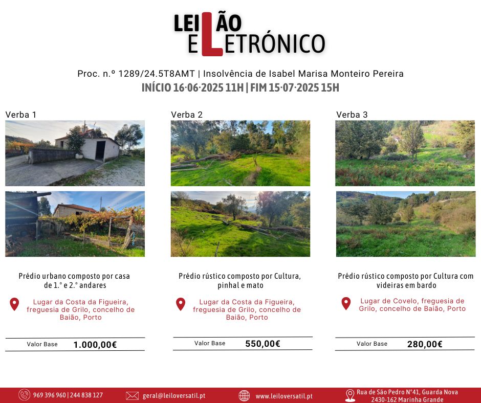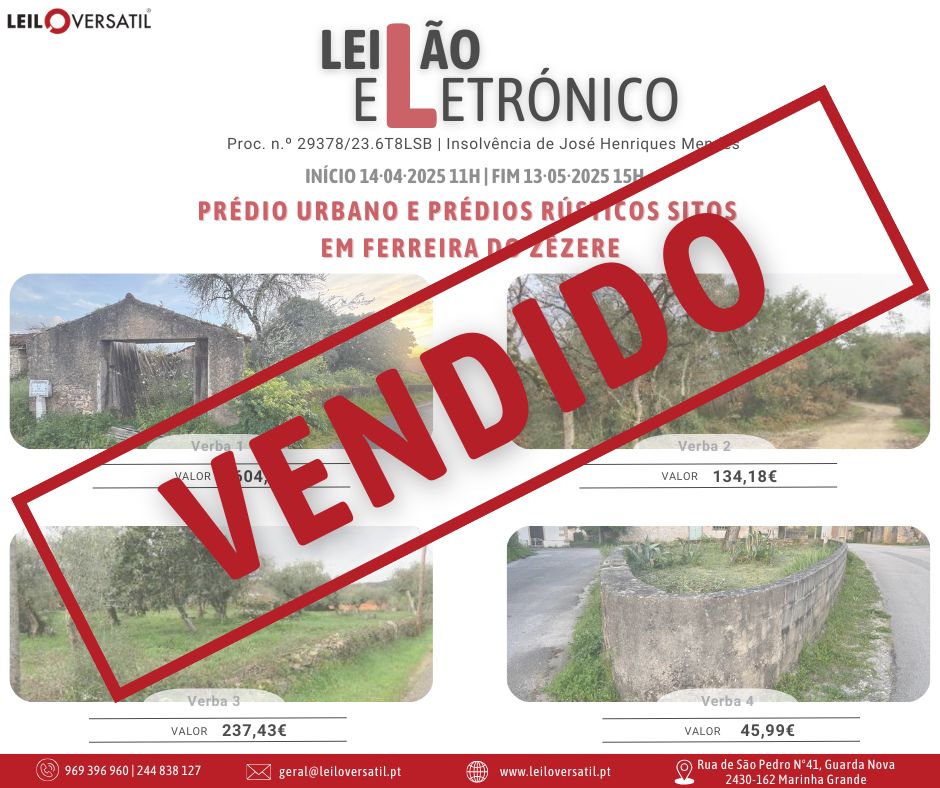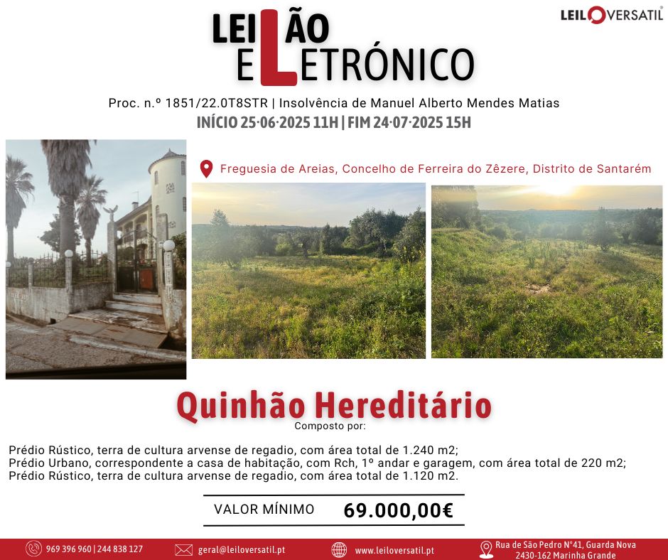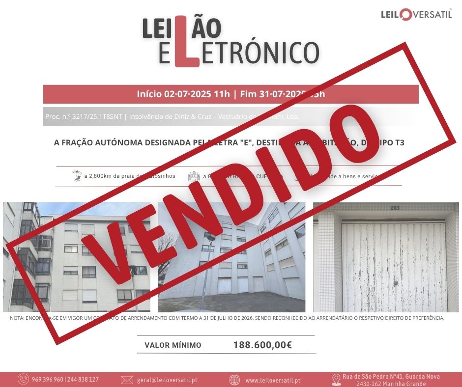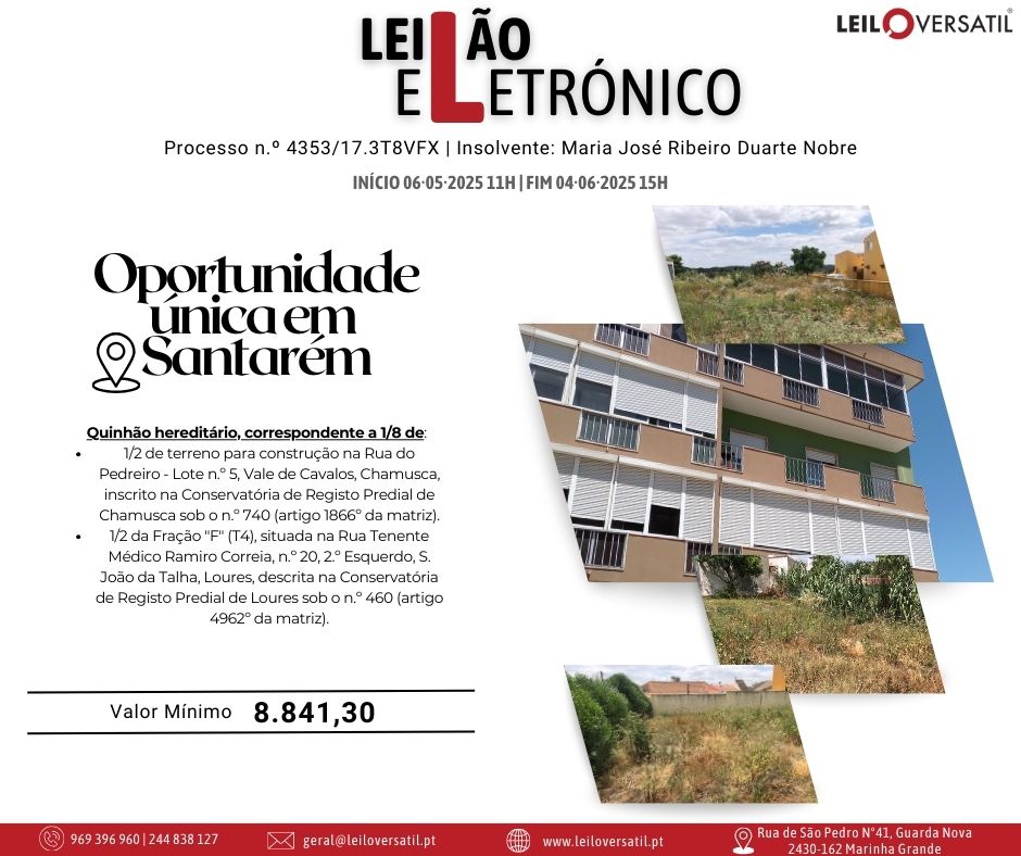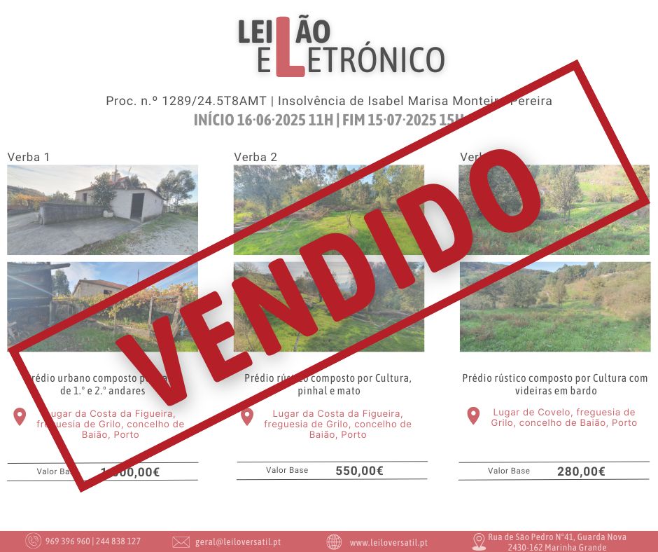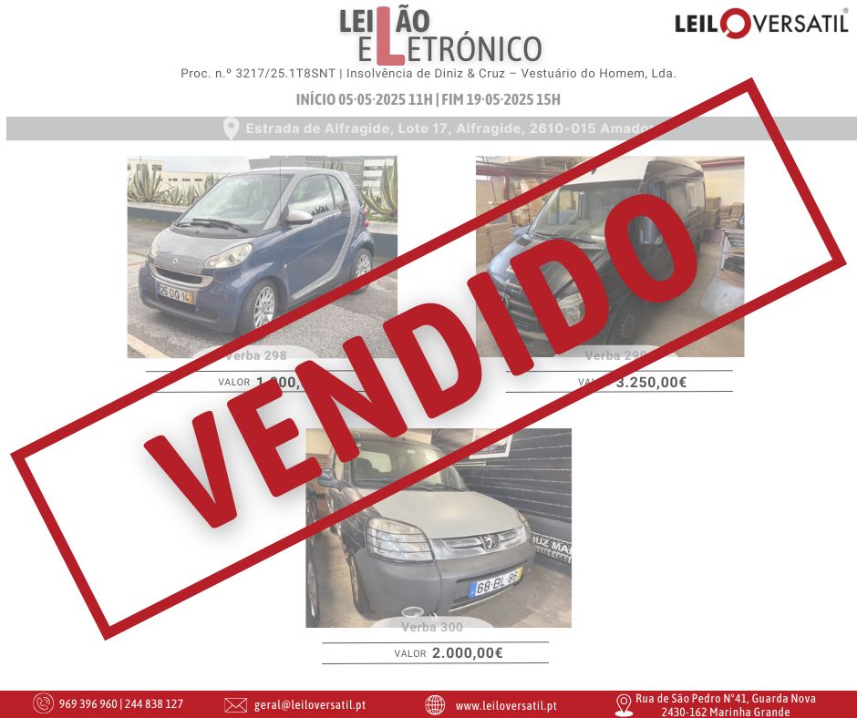Leilão Eletrónico | Processo nº 514/24.7T8OAZ - Insolvência de César Miguel Costa Santos Amorim