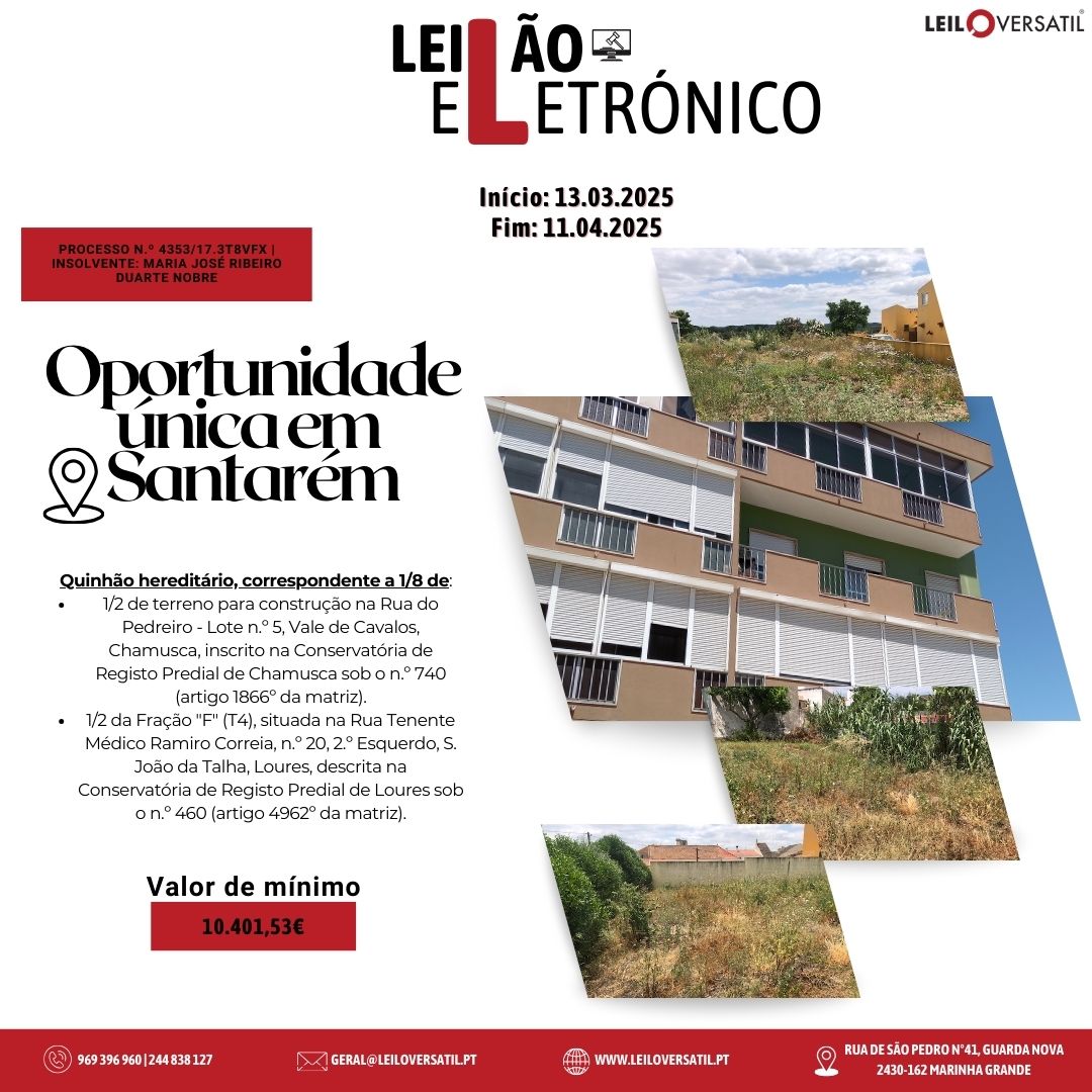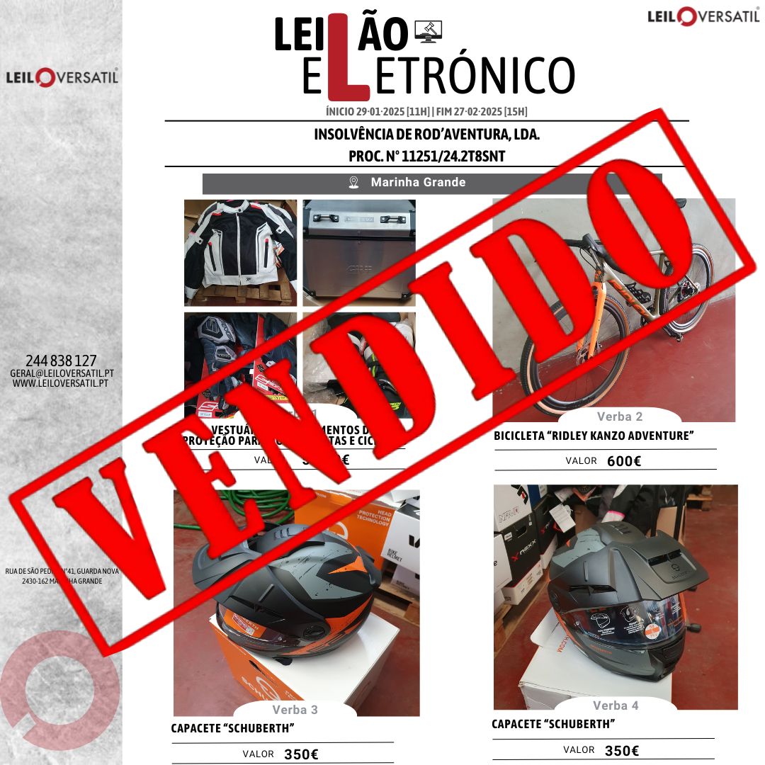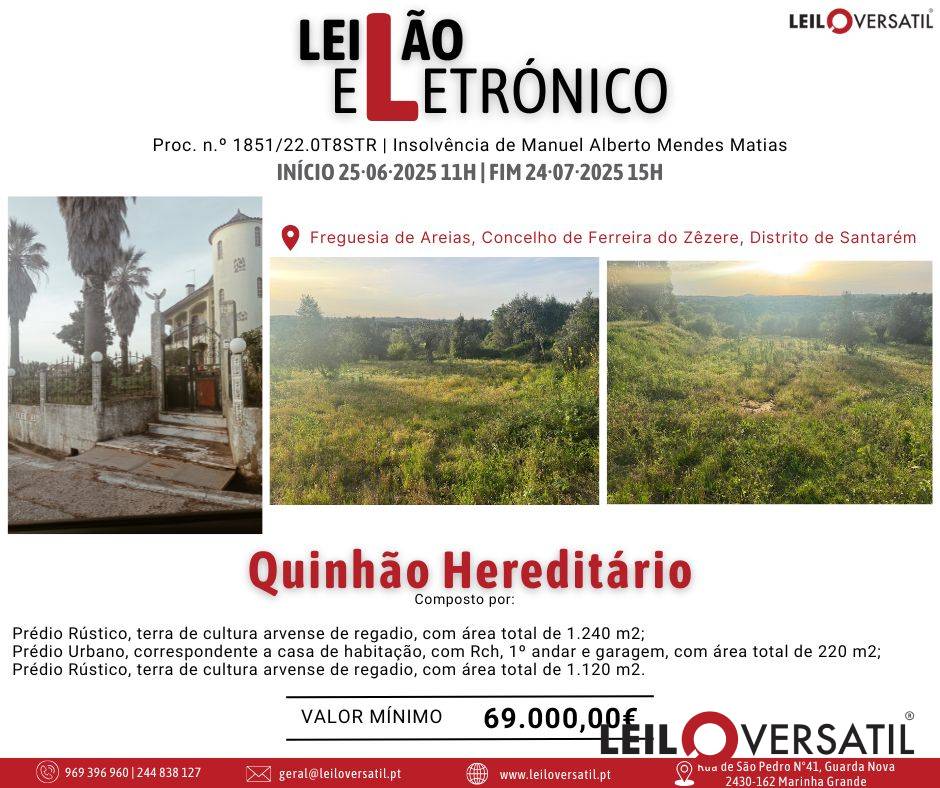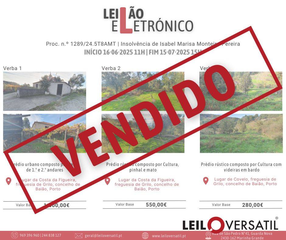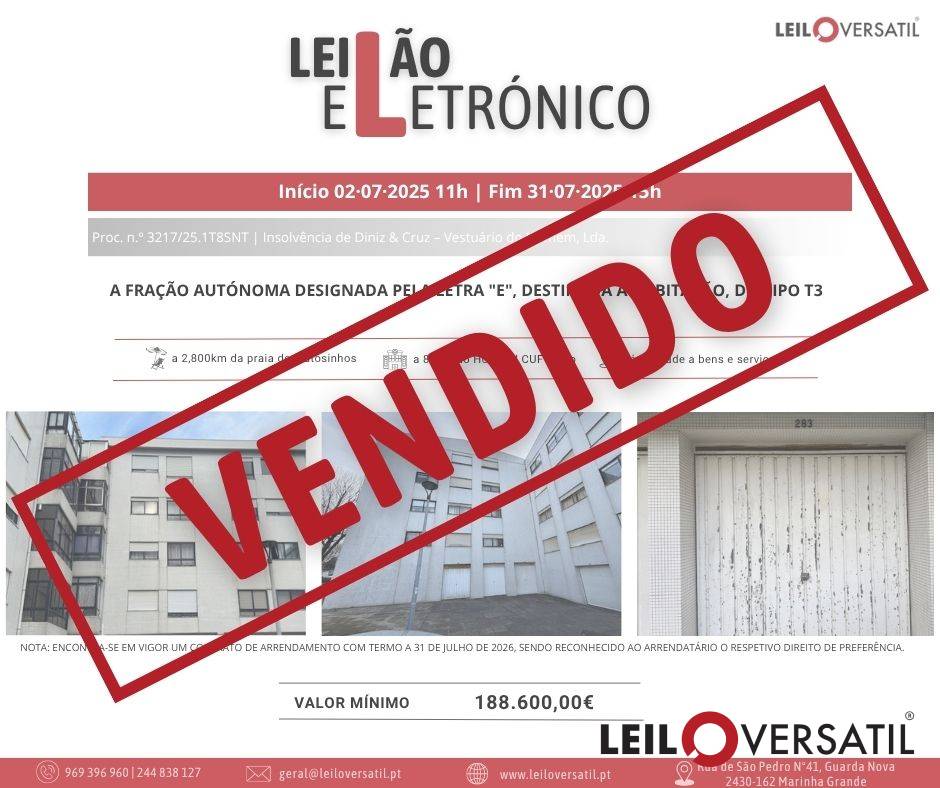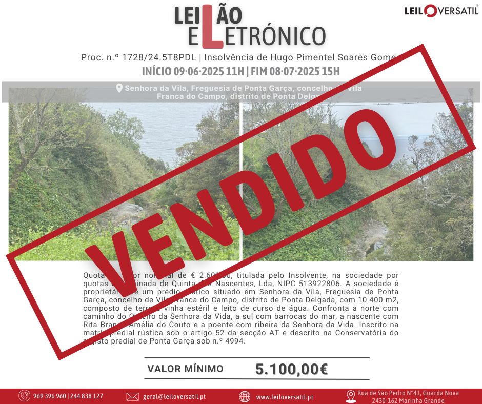 Leilão Eletrónico | Processo nº 514/24.7T8OAZ - Insolvência de César Miguel Costa Santos Amorim