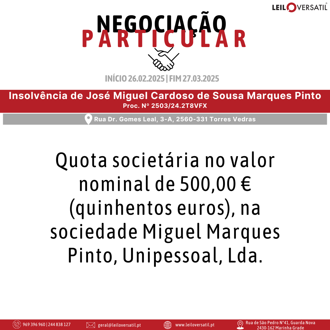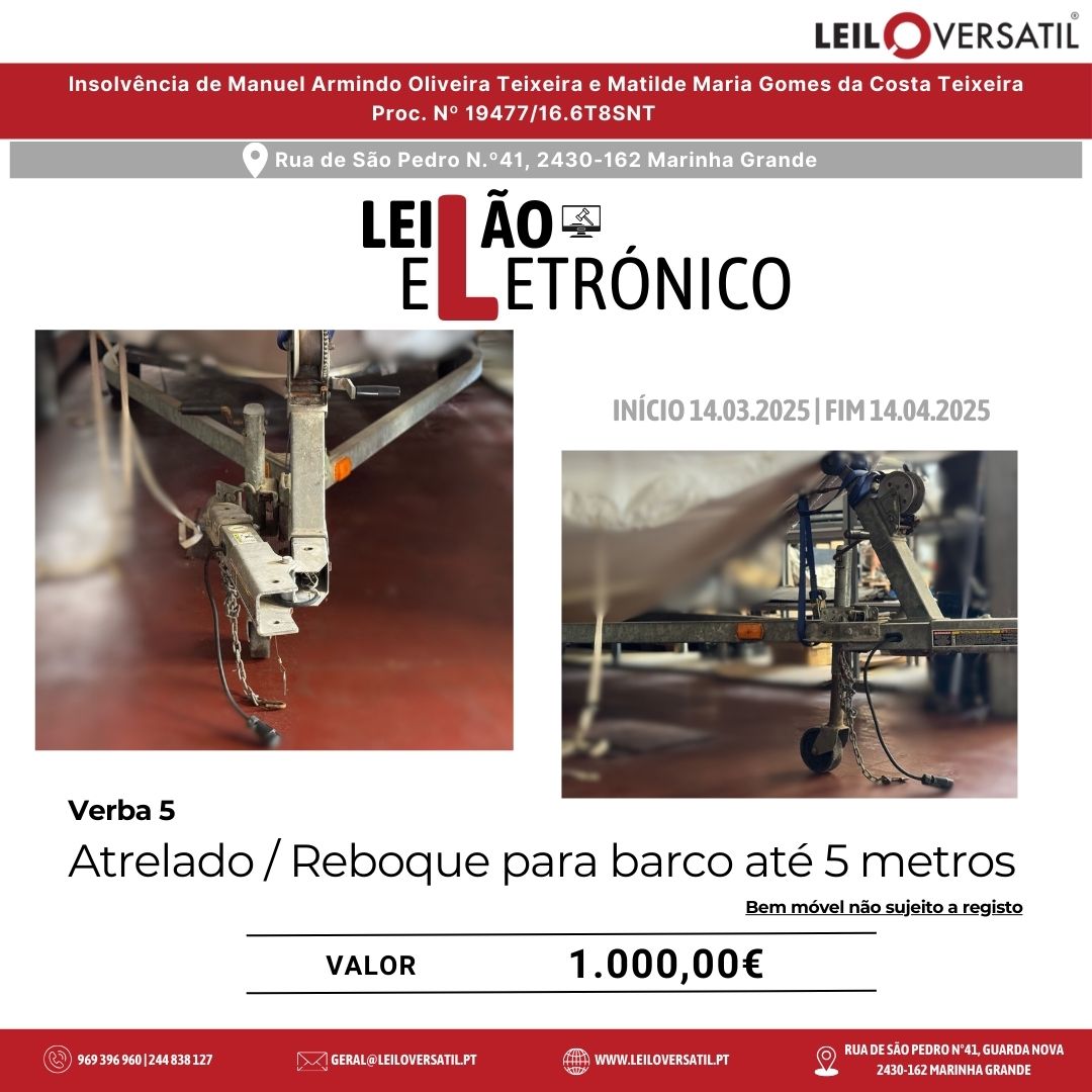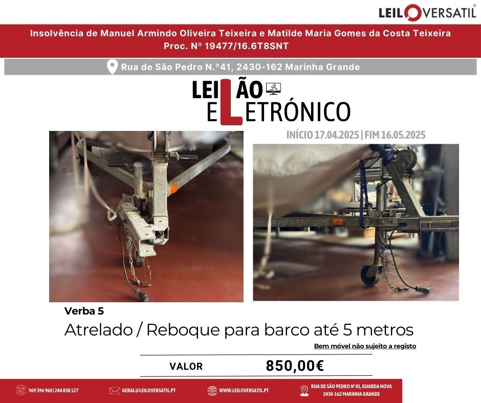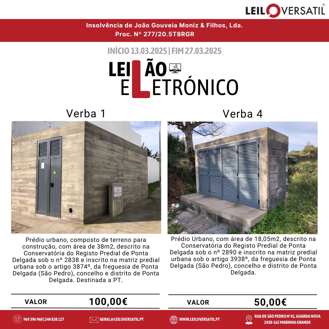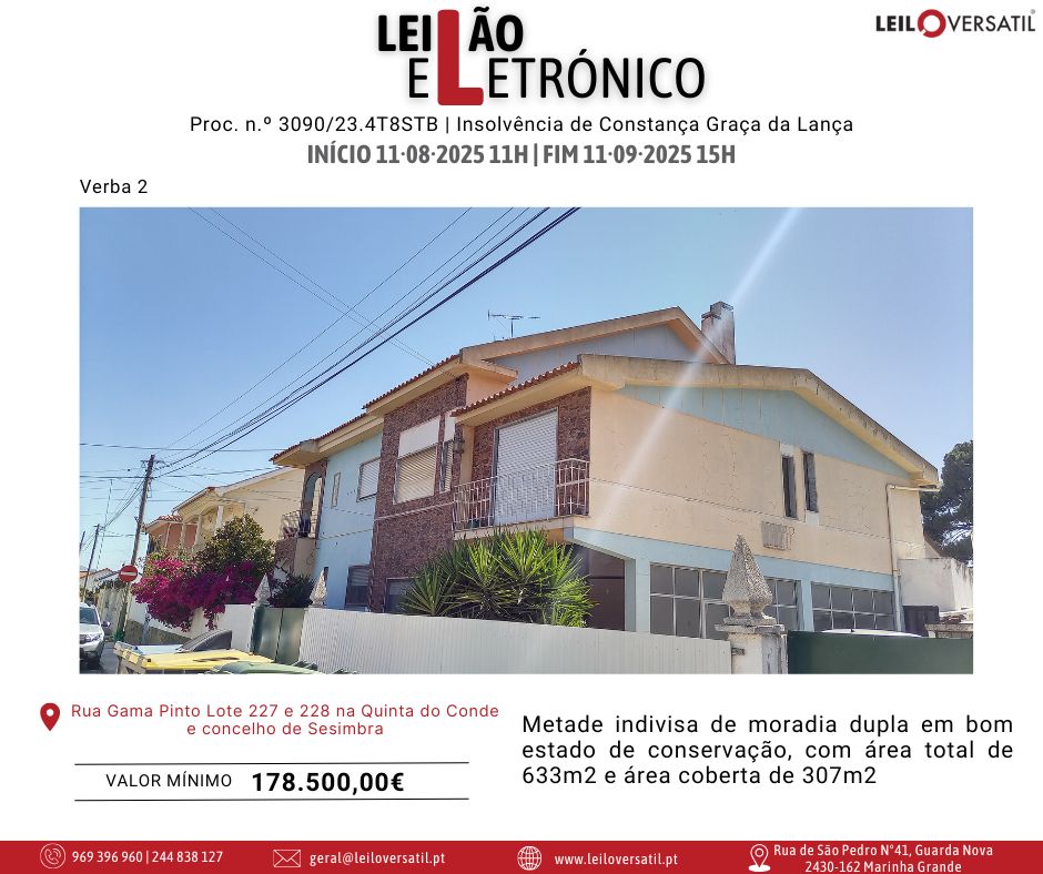 Leilão Eletrónico | Processo nº 514/24.7T8OAZ - Insolvência de César Miguel Costa Santos Amorim