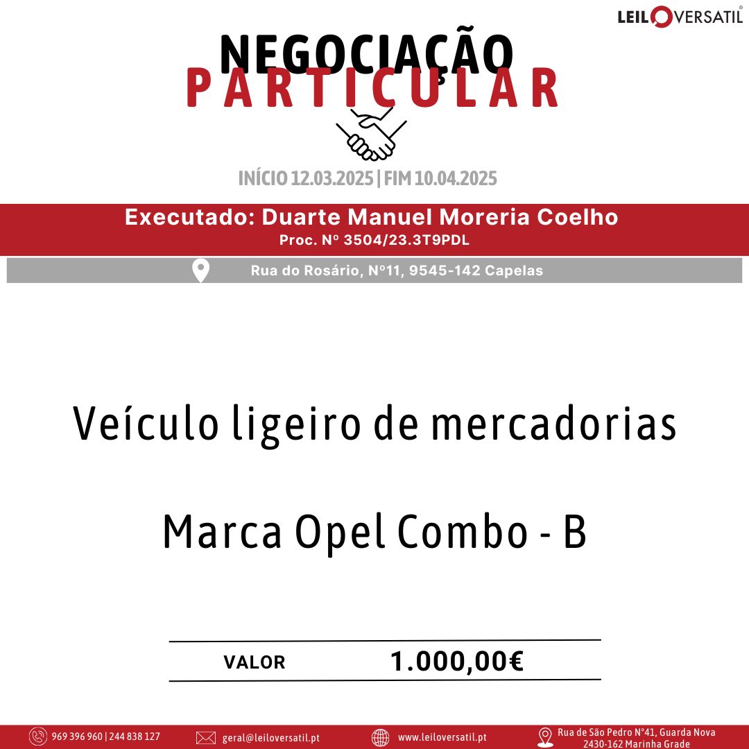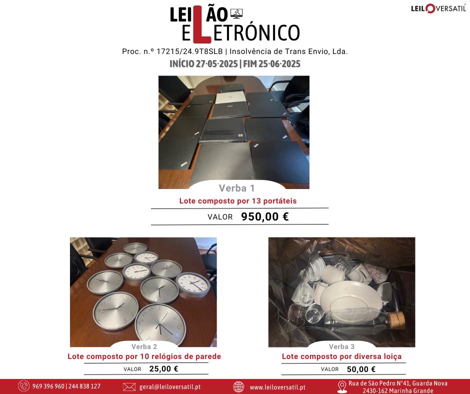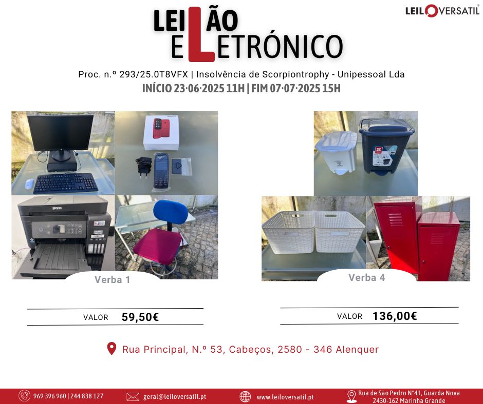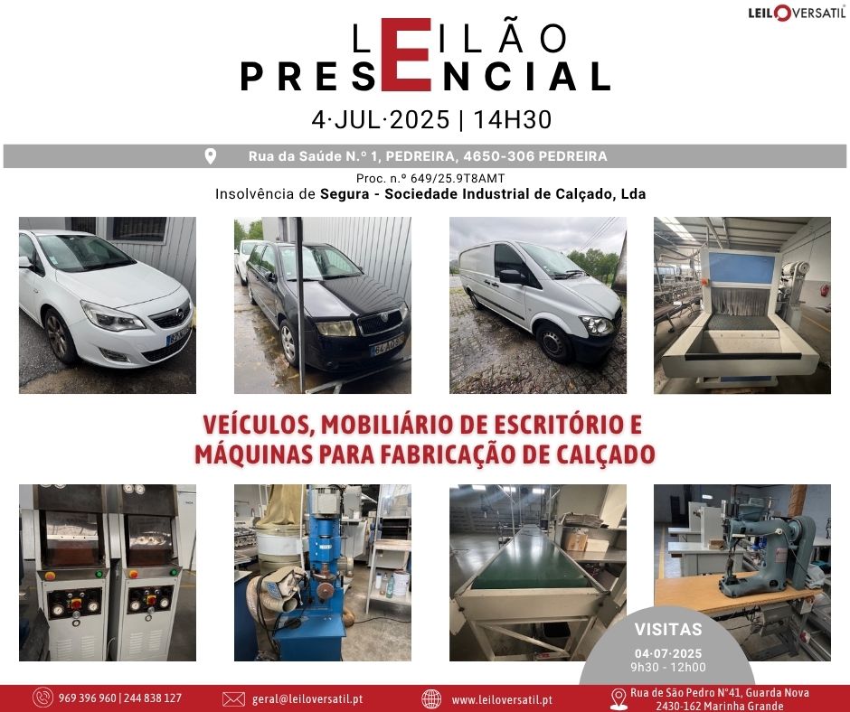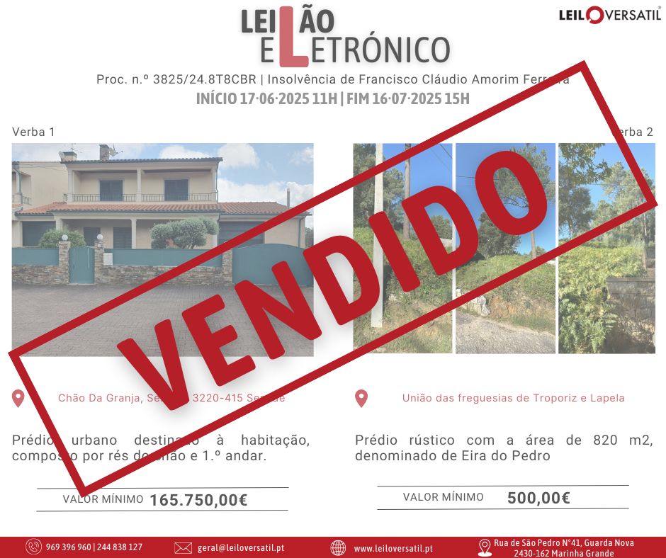 Leilão Eletrónico | Proc. n.º 3825/24.8T8CBR | Insolvência de Francisco Cláudio Amorim Ferreira