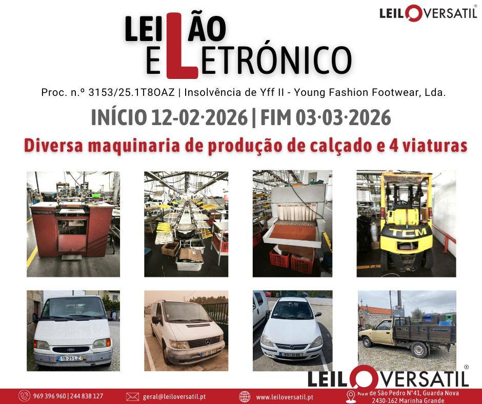Leilão Eletrónico | Processo nº 3153/25.1T8OAZ - Insolvência de Yff II - Young Fashion Footwear, Lda.